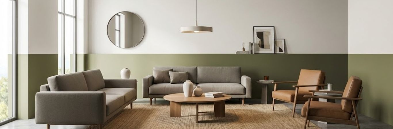 If you enjoy experimenting with design, a two-colour combination for living room walls strikes the perfect balance. It lets you play with contrast, depth, and atmosphere without overwhelming the space. Interior experts often recommend two-tone colour schemes because they add structure, sophistication, and a modern edge to living room interiors.