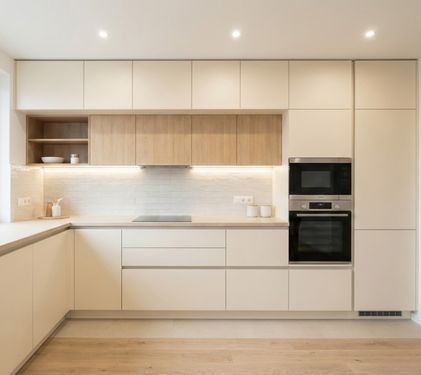 Cream is not just one colour. It ranges from soft off-white tones to warmer beige-based shades. Lighter creams work well in small kitchens, making the space feel open. Slightly deeper cream tones add warmth in larger kitchens without overwhelming the room.