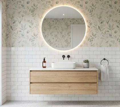 Wallpaper can be used to create accent walls, highlight vanity areas or introduce patterns that are difficult to achieve with paint alone. In smaller bathrooms, it can also add depth and character without taking up physical space.