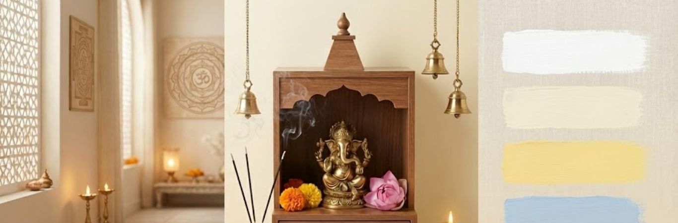 This guide explains pooja room colours as per Vastu and how simple, thoughtful colour choices can make the space feel more harmonious and spiritually uplifting.