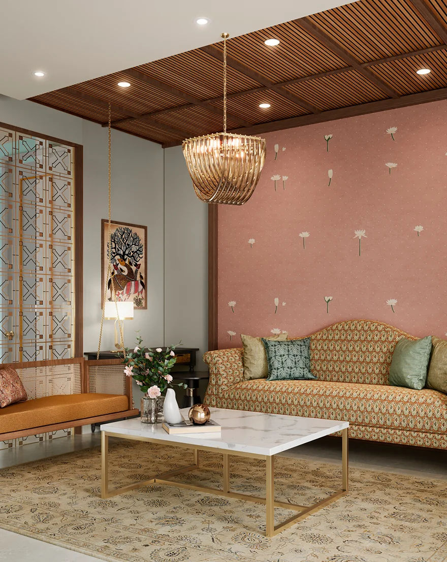 Pink Accents with Wooden Paneling