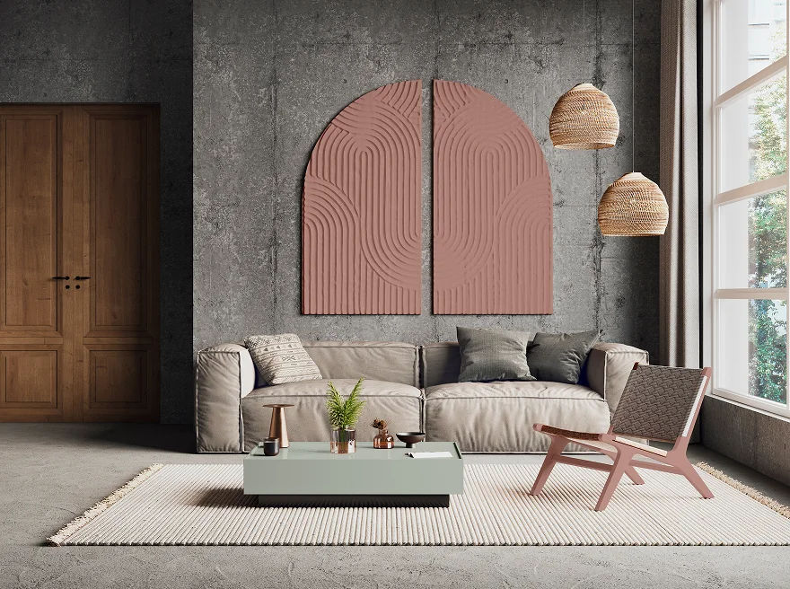 Gray Sofa with Peach Table