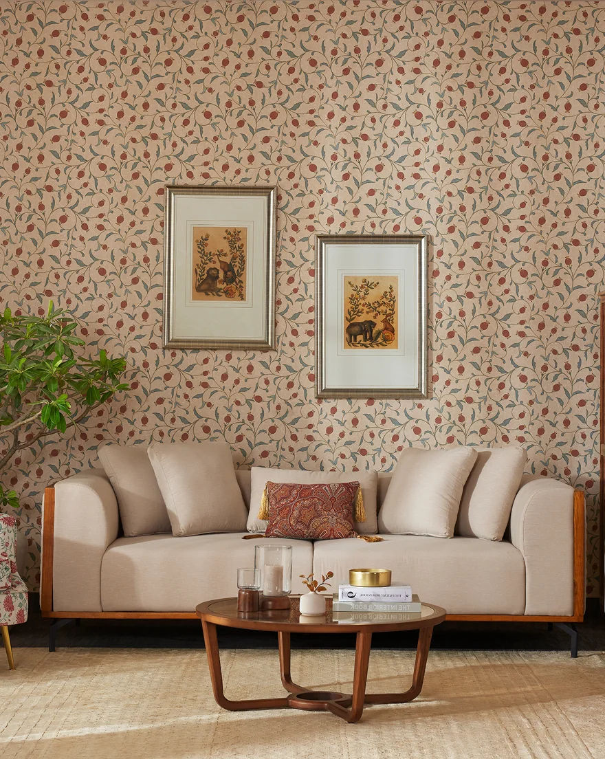 Beige Sofa with Patterned Rug