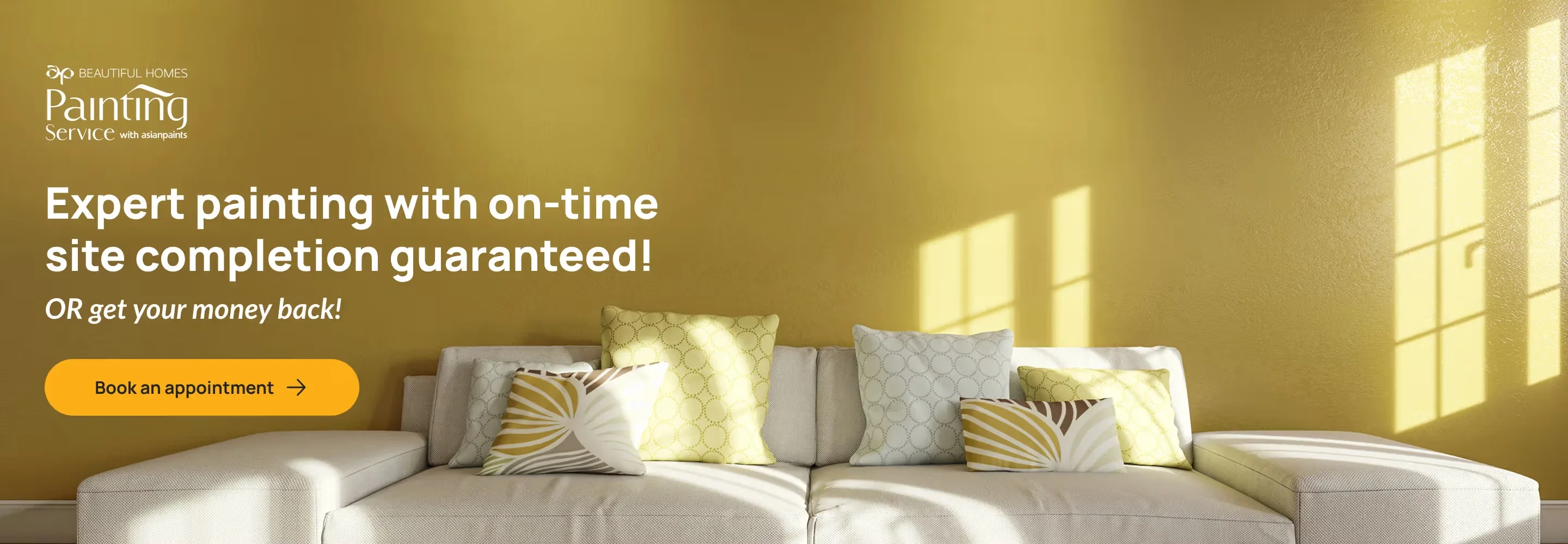 Painting a house is a complex process that involves many stages from planning to execution. If you’re searching for the best home painting service in your area, Asian Paints Beautiful Homes Painting Services can be your go-to partner. Our professional painting services include everything you need, such as pre-painting site evaluation, colour consultancy, sanitisation services, high-quality products, site supervision, on-time painting experience, technical site evaluation, post-painting professional cleaning and much more. Our service ensures that we enhance the beauty of your home while following proper safety painting measures, providing you with a hassle-free and safe experience.